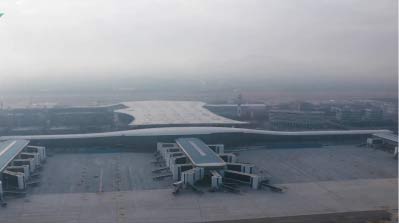 杭州蕭山國際機場現有T1、T2、T3三座航站樓設計年旅客吞吐量為3300萬,后續經過改擴建后將上升至4000萬。新建的T4航站樓完成三階段建設后面積將達72萬平方米,設計年旅客吞吐量將達到5000萬。本次驗收的三期項目航站樓標段主要建設內容包括旅客航站樓及北三指廊、地下空間開發、原有建筑擴建、道路、新建樓前高架、1號路車庫地道、綜合管廊、污水泵站等。工程總建筑面積約67萬平方米,其中航站樓地下二層、地上四層(局部五層),平面布局采取了集中式構型設計,空間導向明確,分為一個主樓、南北兩條水平長廊和北面三根指廊,主樓面寬約440米,進深約205米,三根指廊寬度均為42米,兩根水平廊寬度均為22米。航站樓主樓區下部有規劃的地鐵和高鐵通道穿過,航站樓結構與高鐵、地鐵結構共建。
