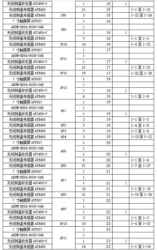 本杭州蕭山國際機場三期擴建工程項目使用無線無源測溫傳感器共計12366只,無線測溫收發器共計471只,電源模塊共計471只,觸摸屏共計471只。詳細配置方案和安裝情況如下表。