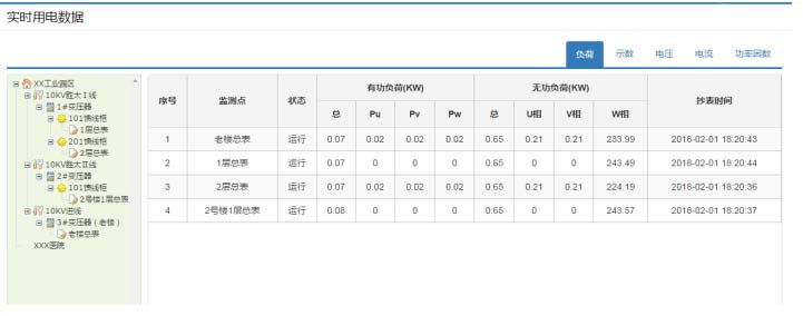 同時(shí)也可以查看分路實(shí)時(shí)用電數(shù)據(jù),提供負(fù)荷、示數(shù)、電壓、電流、功率因數(shù)等主要用電數(shù)據(jù)的統(tǒng)計(jì)和曲線圖形。