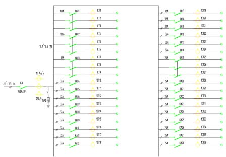2.3 AMC16Z交流選型案例——輸入:1*250A/3P,輸出:2*100A/3P + 1*32A/3P + 1*25A/3P + 15*32A/1P + 9*25A/1P