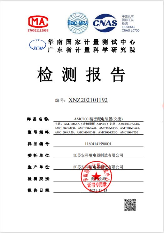 AMC100配電裝置具備CNAS檢測(cè)報(bào)告。