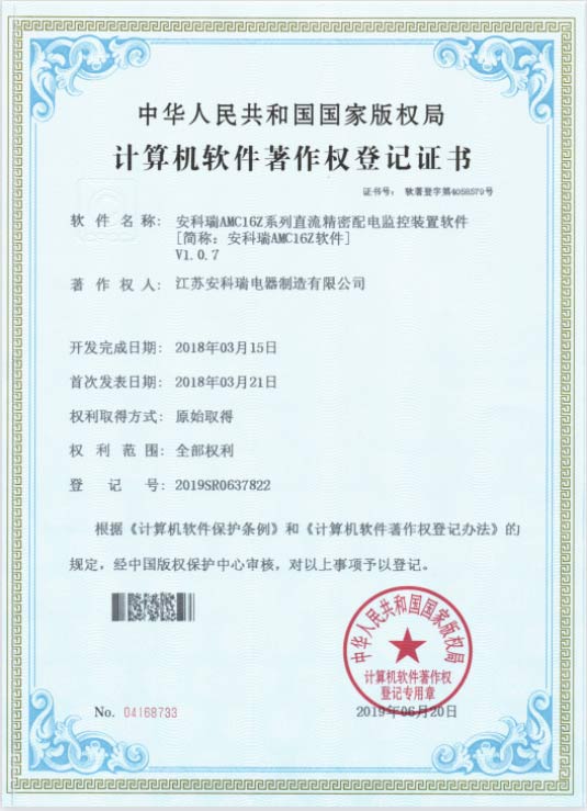 AMC100配電裝置具備CNAS檢測(cè)報(bào)告和計(jì)算機(jī)軟件著作權(quán)。
