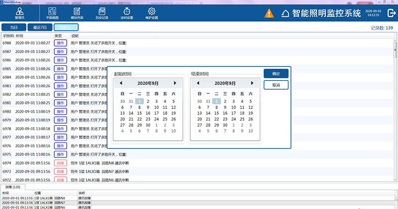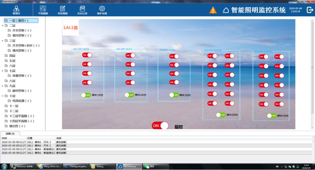 2)當發(fā)生模塊離線、網(wǎng)關設備掉線或者狀態(tài)反饋和下發(fā)控制命令不一致時會發(fā)生故障報警,并將故障報警信息記錄并顯示在界面中。
