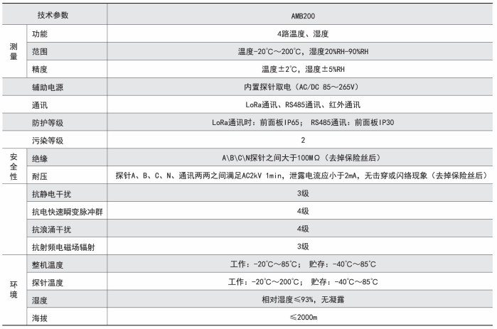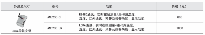 AMB200 系列母線接頭測溫裝置是一種針對絕緣母線槽連接器溫度在線監控的裝置。該產品可對母線槽內母排溫度進行實時監控、高溫預警及報警,預警值及報警值均可設置,且裝置可選 RS485 或無線傳輸功能,可將采集到的母線溫度及其變化狀況等數據實時傳送到監控系統。裝置主要應用于主要應用于各種領域的密集絕緣母線連接器的在線溫度監控系統。