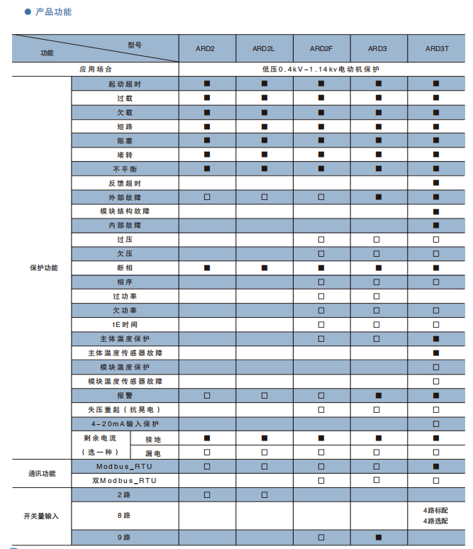 該系列低壓電動機保護器,具有過載、斷相、不平衡、欠載、接地/漏電、堵轉等保護功能。可與接觸器、電動機起動器等電器元件構成電動機控制保護單元,具有遠程自動控制、現場直接控制、面板指示、信號報警、現場總線通信等功能。