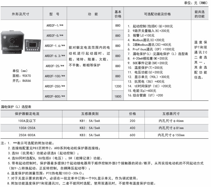 ARD2、ARD2F、ARD3配電流互感器,但1A/5A規格,不配一次互感器。