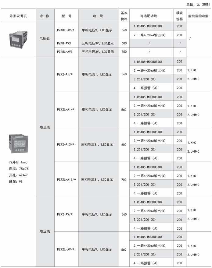PZ系列交流檢測儀表產品簡介: