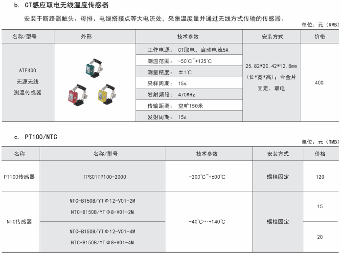綜上所述,確定型號為:無線測溫裝置:ARTM-P9-300,1臺;無線測溫傳感器:ATE300,9個