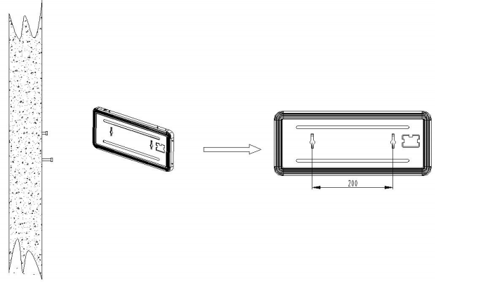 先將塑料膨脹管和螺釘固定到墻上,再將標志燈具背板上的壁掛固定孔對準螺釘后,掛于墻上,實現壁掛式安裝,如圖 所示。