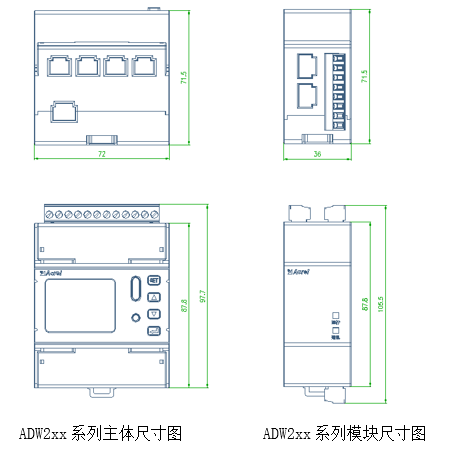 ADW2xx系列主體及模塊尺寸圖: