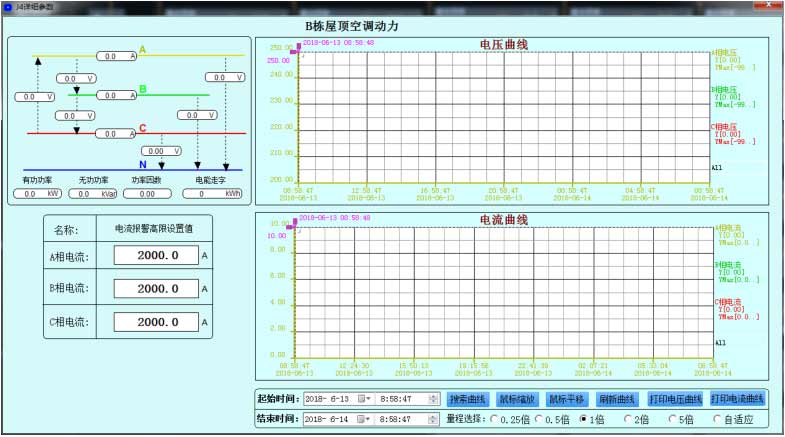 系統對配電系統總進線、主變壓器、重要負荷出線的運行狀態進行在線實時監視,用曲線顯示電流、變壓器運行溫度、有功需量、有功功率、視在功率、變壓器負荷率等運行趨勢,分析變壓器負荷率及損耗,方便運行維護人員及時掌握運行水平和用電需求,確保供電安全可靠。