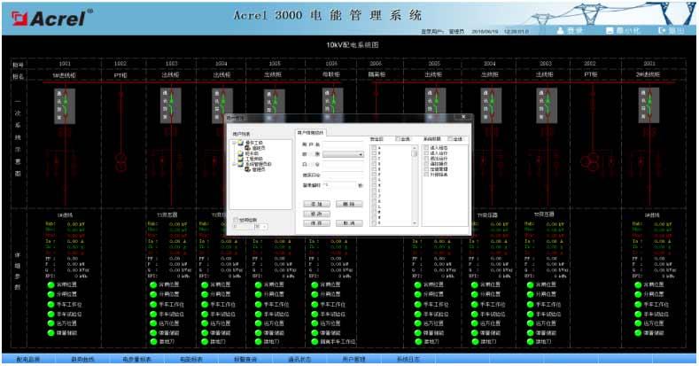系統為保障系統安全穩定運行,設置了用戶權限管理功能。通過用戶權限管理能夠防止未經授權的操作(如配電回路名稱修改等)。可以定義不同級別用戶的登錄名、密碼及操作權限,為系統運行、維護、管理提供可靠的安全保障。